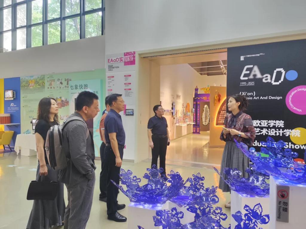 座谈会前,考察团一行在欧亚学院相关人员的陪同下,重点参观了行政中心、艾德艺术设计学院毕业展、虹桥学生中心、人文教育学院、图书馆等。欧亚学院独具特色的“学生社区”管理模式给考察团留下深刻印象——其打破传统按学院划分住宿的框架,依据学生发展目标与生涯规划重构社区单元,并在各社区内集成丰富的运动、学习、社交等共享空间,构建了高度融合的支持性成长生态,充分体现了“以学生发展为中心”的育人理念创新。